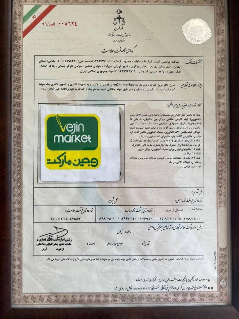 "وجین مارکت" سایت تخصصی فروش اینترنتی ماشین آلات و ابزار کشاورزی می¬باشد. این سایت توسط شرکت "پردیس کشت ابزار" طراحی و راه اندازی شده و این شرکت با نزدیک به ۲۰ سال سابقه و تخصص در زمینه بازرگانی ماشین آلات کشاورزی تاکنون خدمات شایانی را به مکانیزاسیون کشاورزی ایران ارائه نموده است.